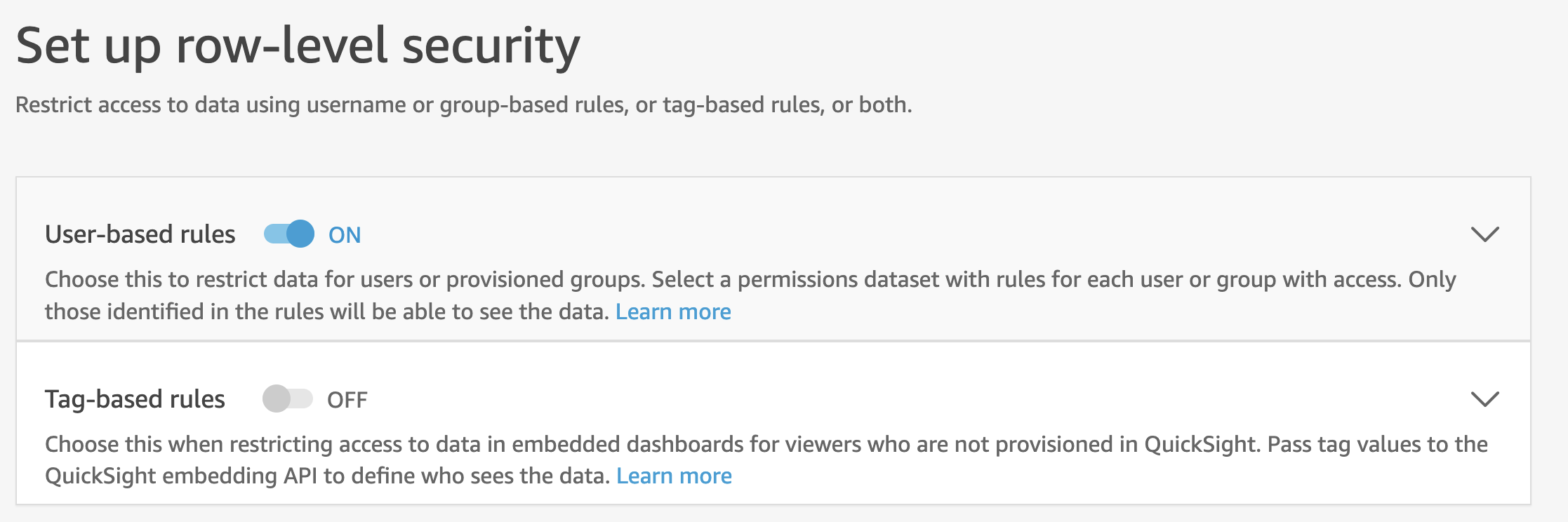 The Dataset are configured with User-based rules leveraging FinOps Center User table for Financial Scope. Users Scope is updated when the Dataset's SPICE is Refreshed.