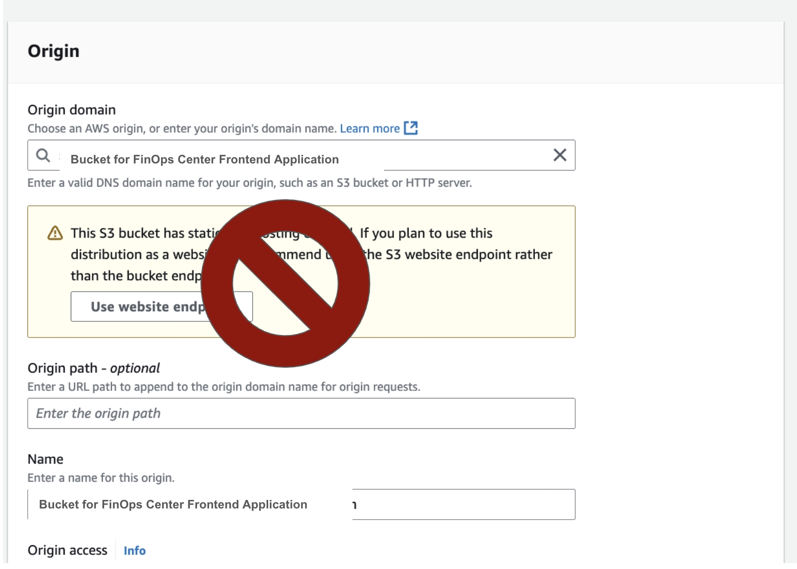 4.Choose the S3 bucket created for deploying the FinOps Center (Note: Do not select the Use Website Endpoint option).